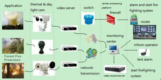 Rely on its own advanced laser illumination and infrared thermal imaging night vision technology,combine with image acquisition, network transmission and display system,Sheenrun develops forest fire prevention intelligent analysis system which can monitoring round the clock.The system is based on digital and network video monitoring.Compared with the general network video monitoring, it is a kind of  higher-end intelligent application. Forest fire intelligent analysis system can realize unattended continuous work, automatically do the analysis and judgement to the video image informations; Discover unusual smoke and fire timely, do the fire alarm and fire behavior analysis in the fastest and best way;Assist the firefighters handle fire crisis effectively, and the maximum to reduce false positives and omission phenomenons; At the same time also can see the scene real-time image, command and dispatch fire fighting directly according to visual images.